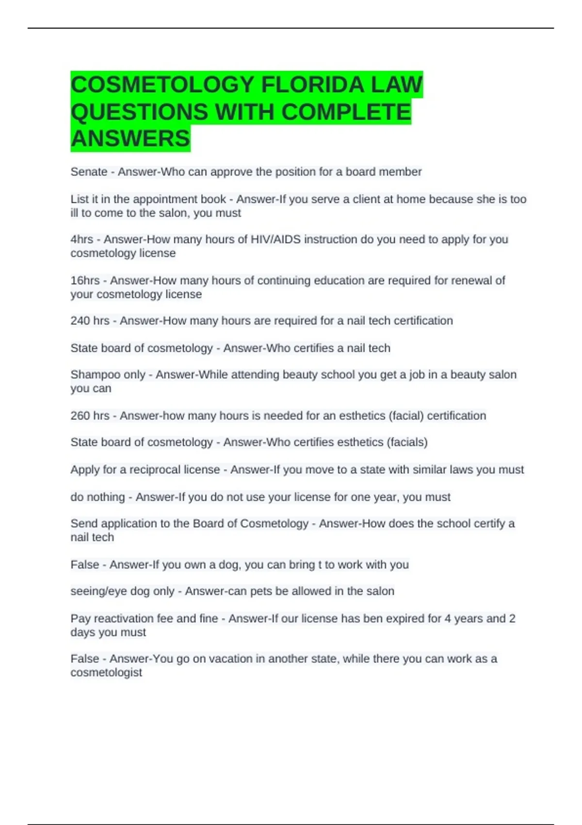 State board of cosmetology - Answer-Who certifies esthetics (facials)