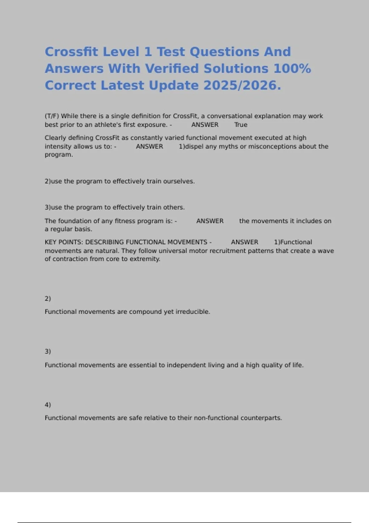 Crossfit Level 1 Test Questions And