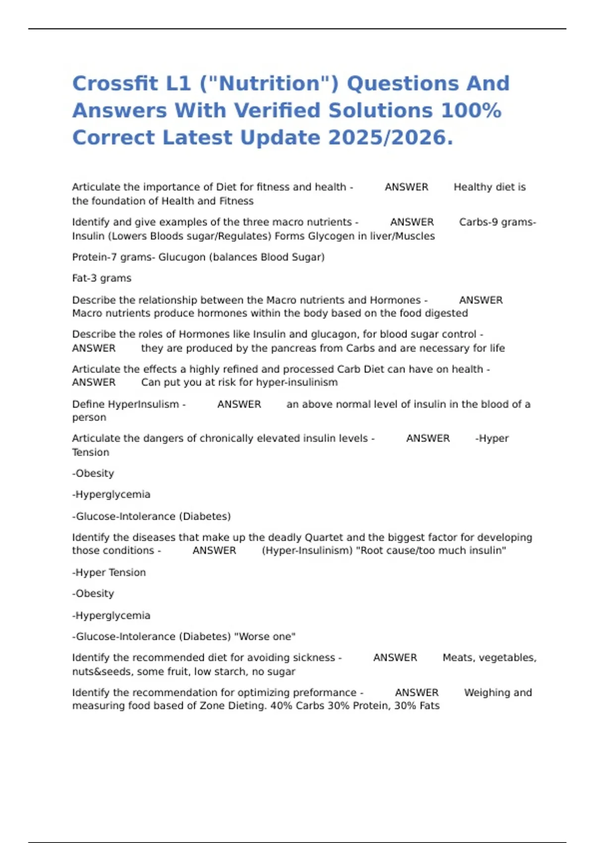 Articulate the importance of Diet for fitness and health - ANSWER Healthy diet is
