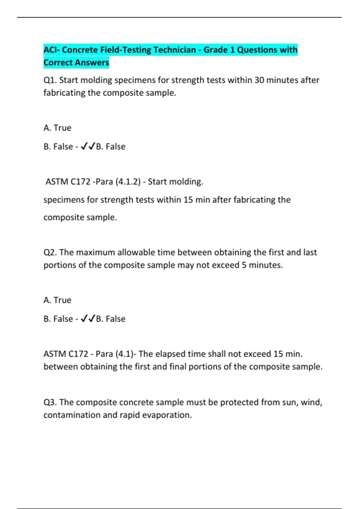 Q1. Start molding specimens for strength tests within 30 minutes after