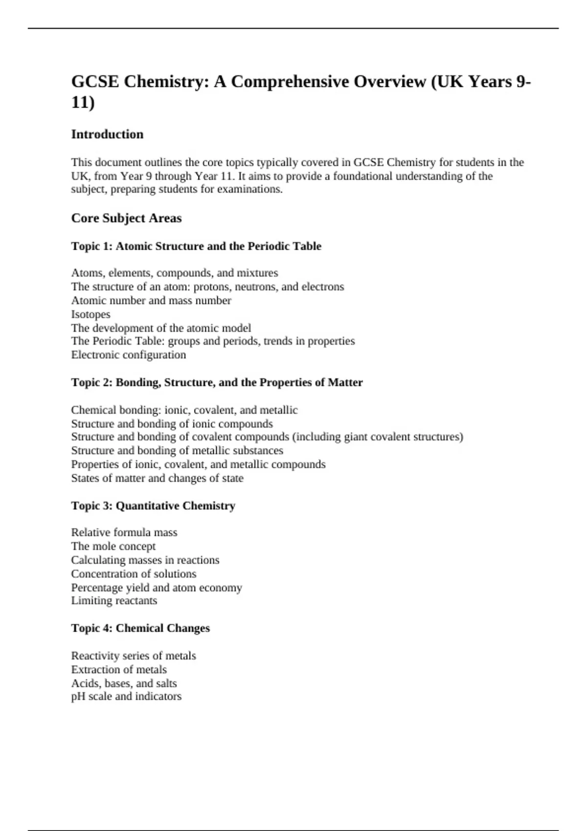This document outlines the core topics typically covered in GCSE Chemistry for students in the