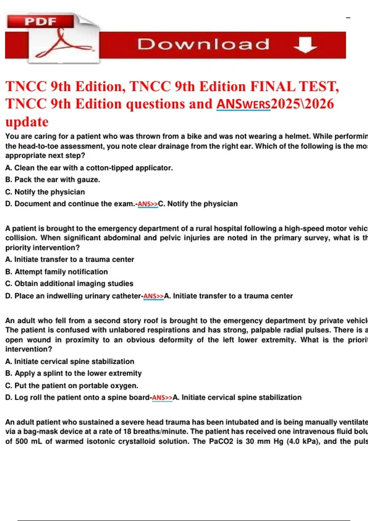 TNCC 9th Edition questions and ANSWERS2025\2026