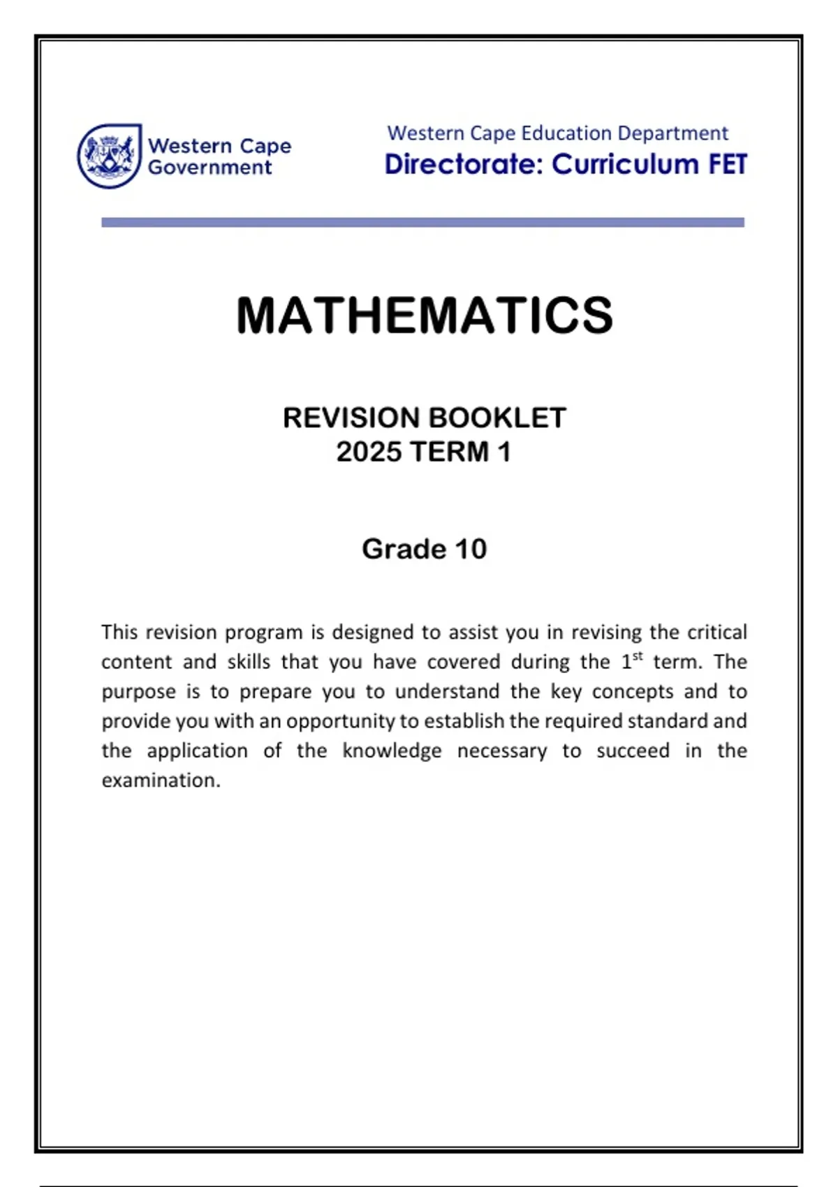 Mathematics revision booklet 2025 Grade 10 Term 1