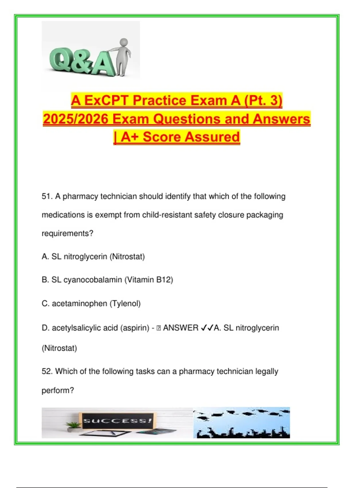 51. A pharmacy technician should identify that which of the following