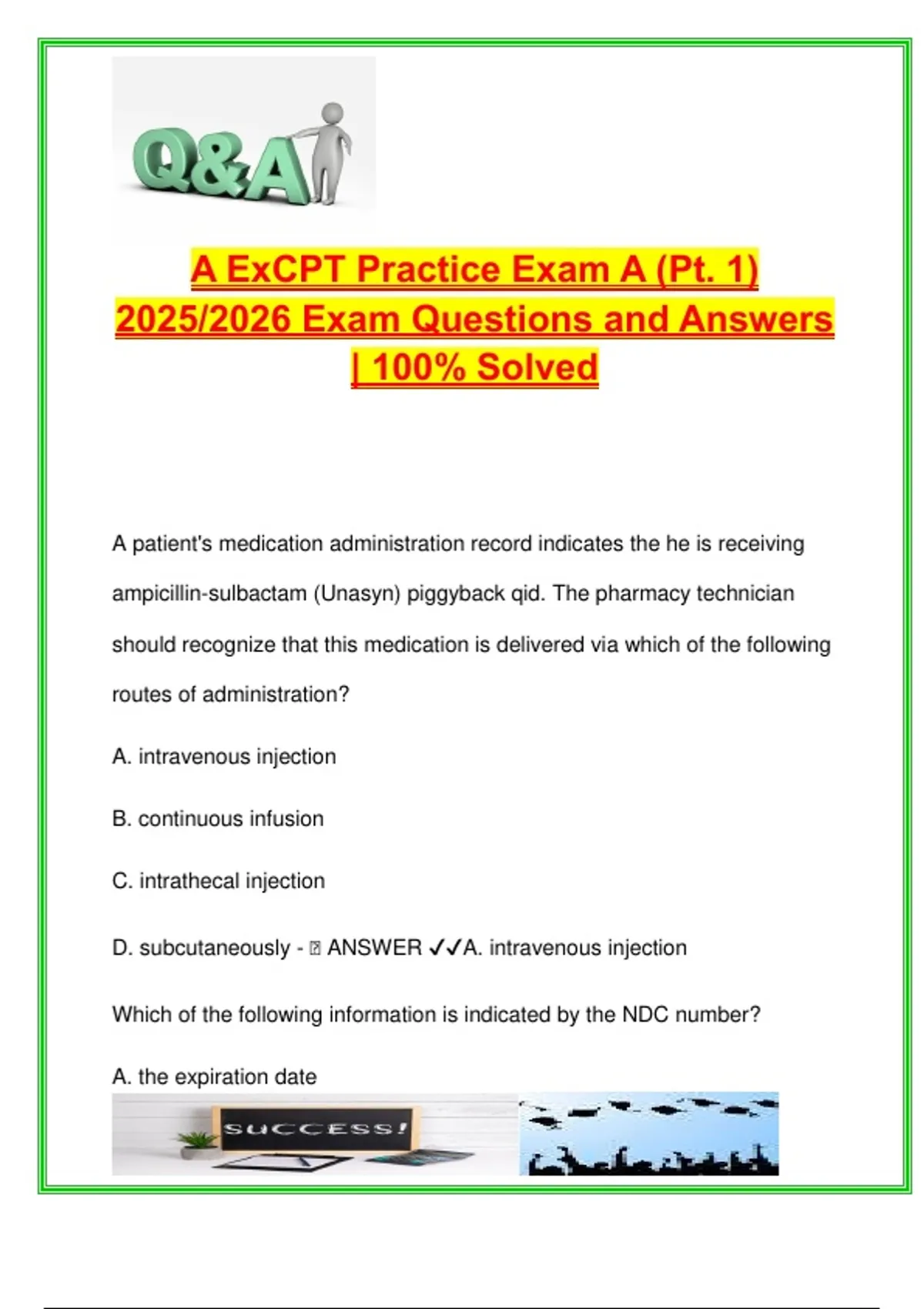 D. subcutaneously - 🧠 ANSWER ✔✔A. intravenous injection