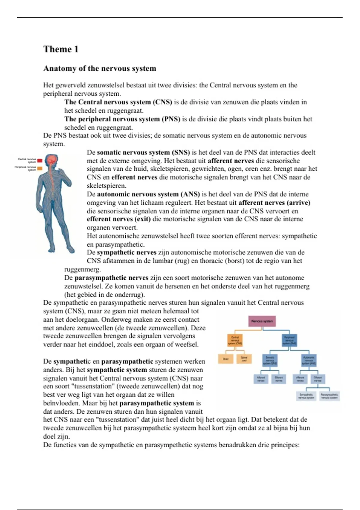 samenvatting van het vak brain and body op de EUR, jaar 1