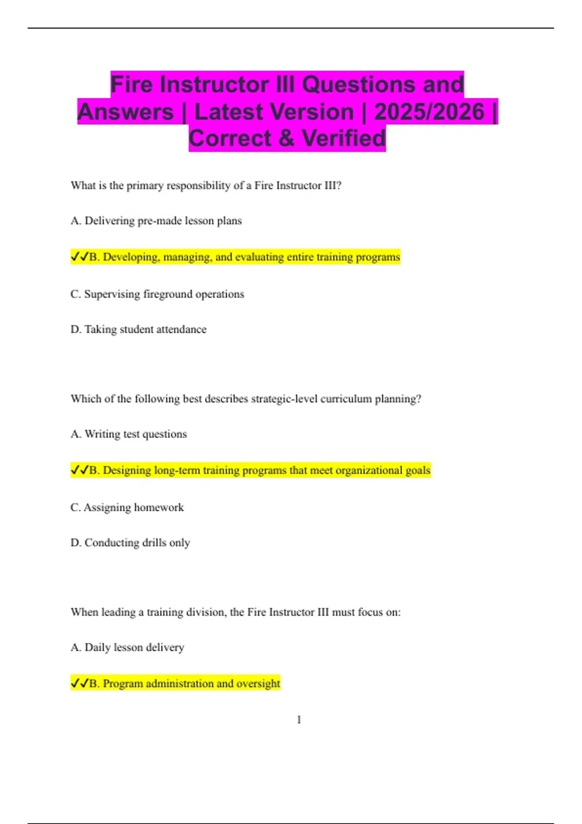 ✔✔B. Other instructors and training staff