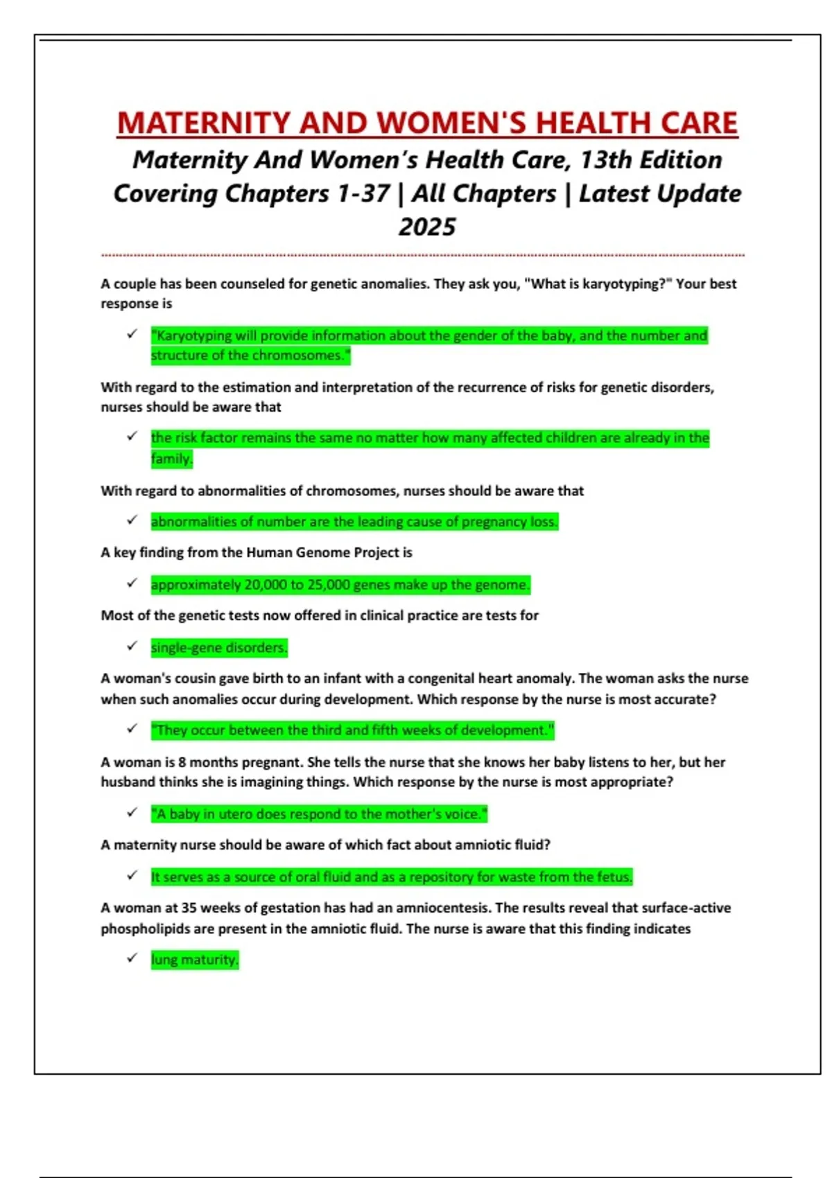 Maternity And Women’s Health Care, 13th Edition Covering Chapters 1-37 | All Chapters | Latest Update 2025