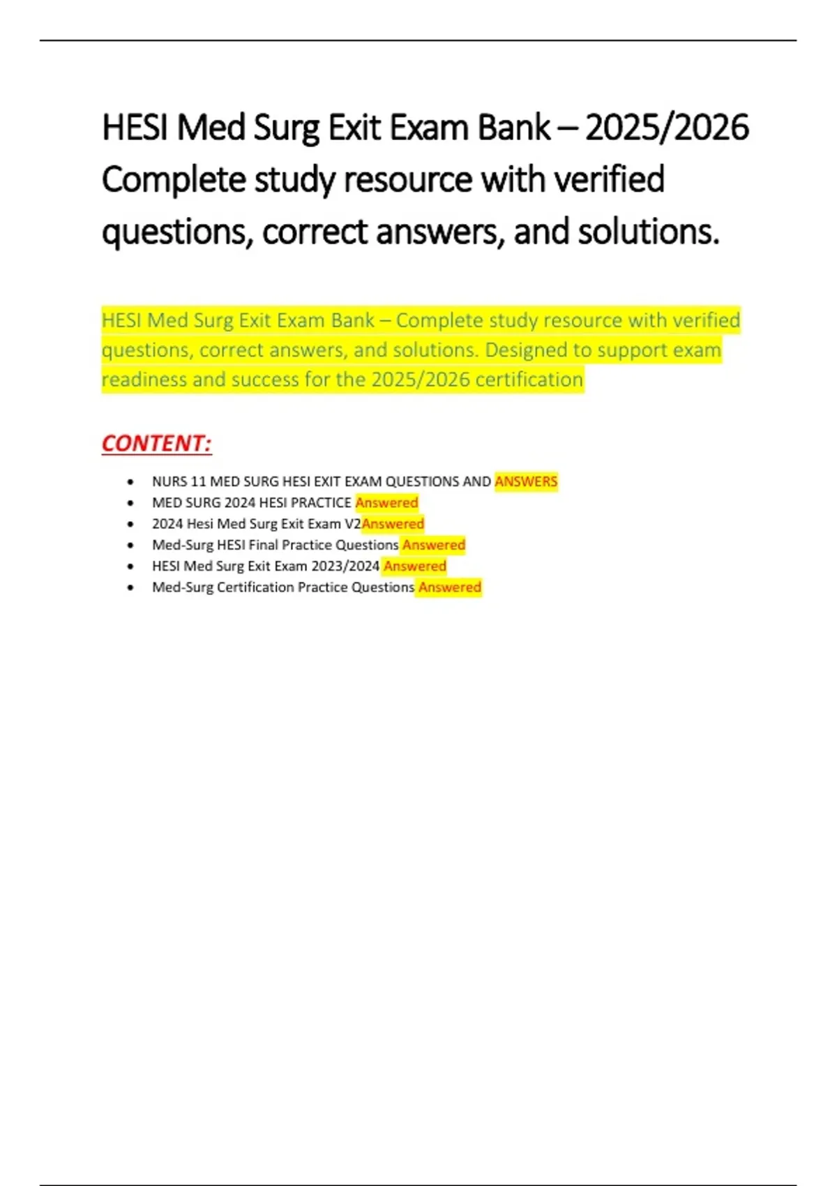 HESI Med Surg Exit Exam Bank – 2025/2026