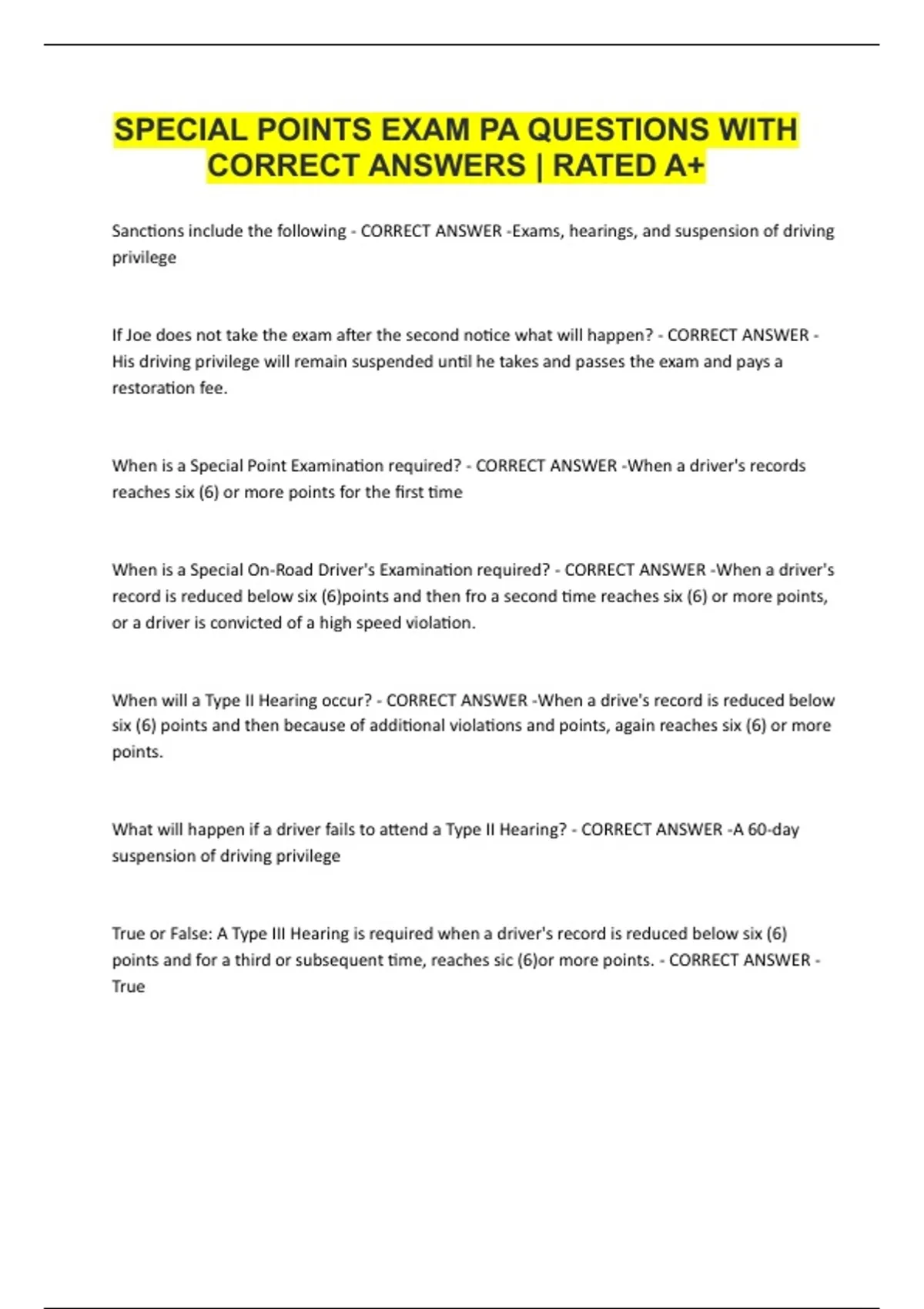 When will a Type II Hearing occur? - CORRECT ANSWER -When a drive's record is reduced below
