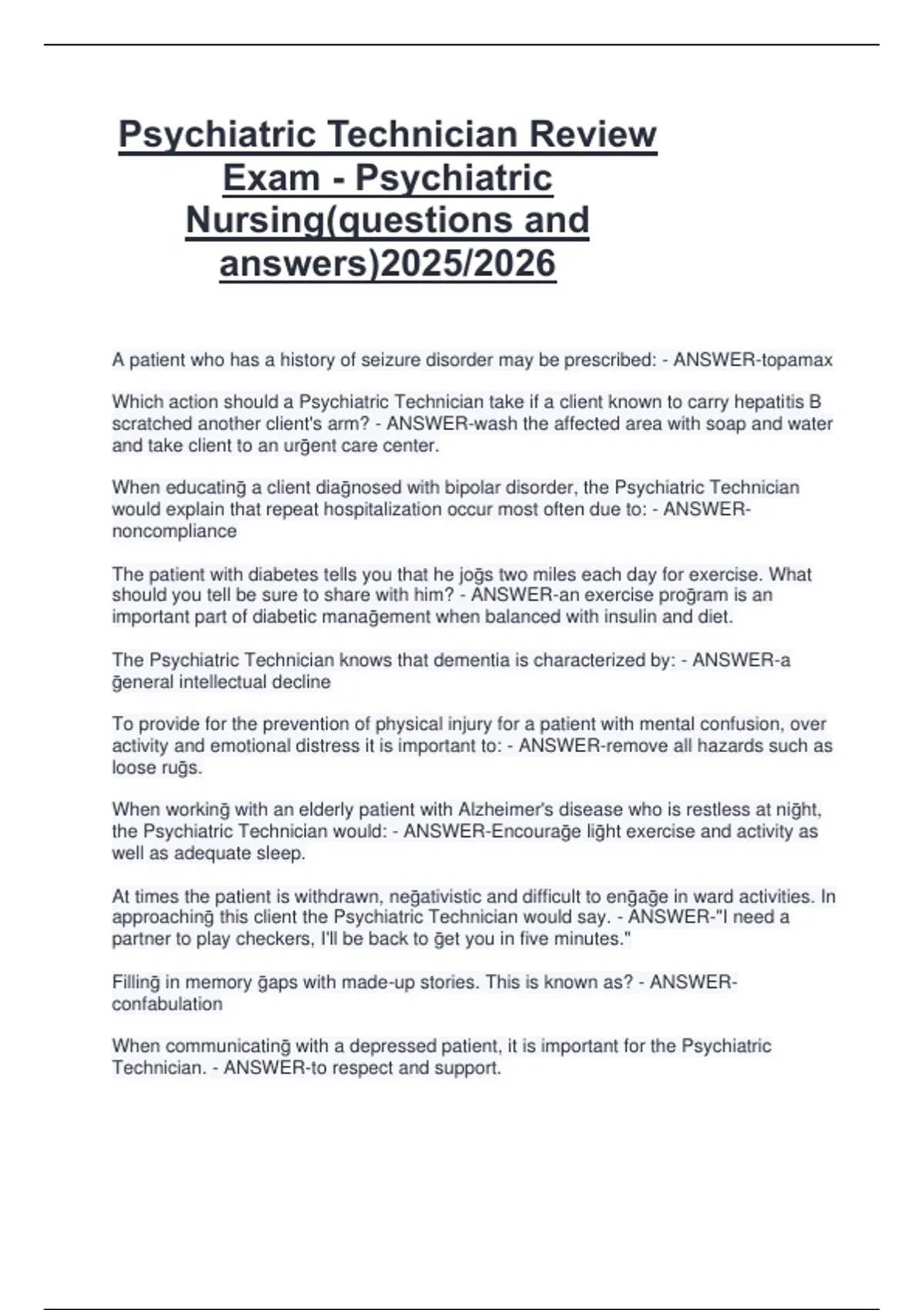 the Psychiatric Technician would: - ANSWER-Encouraḡe liḡht exercise and activity as