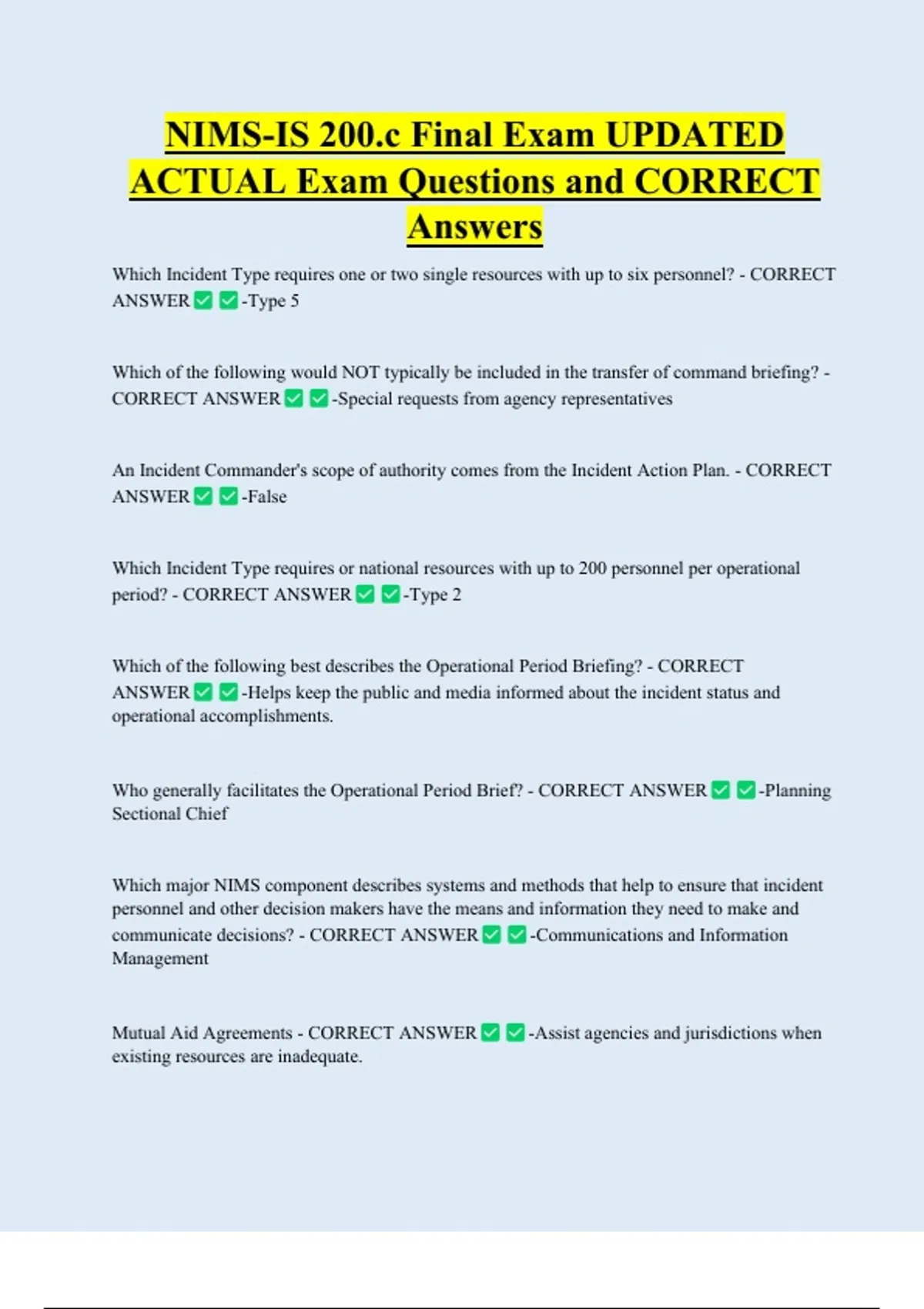 NIMS-IS 200.c Final Exam UPDATED ACTUAL Exam Questions and CORRECT Answers