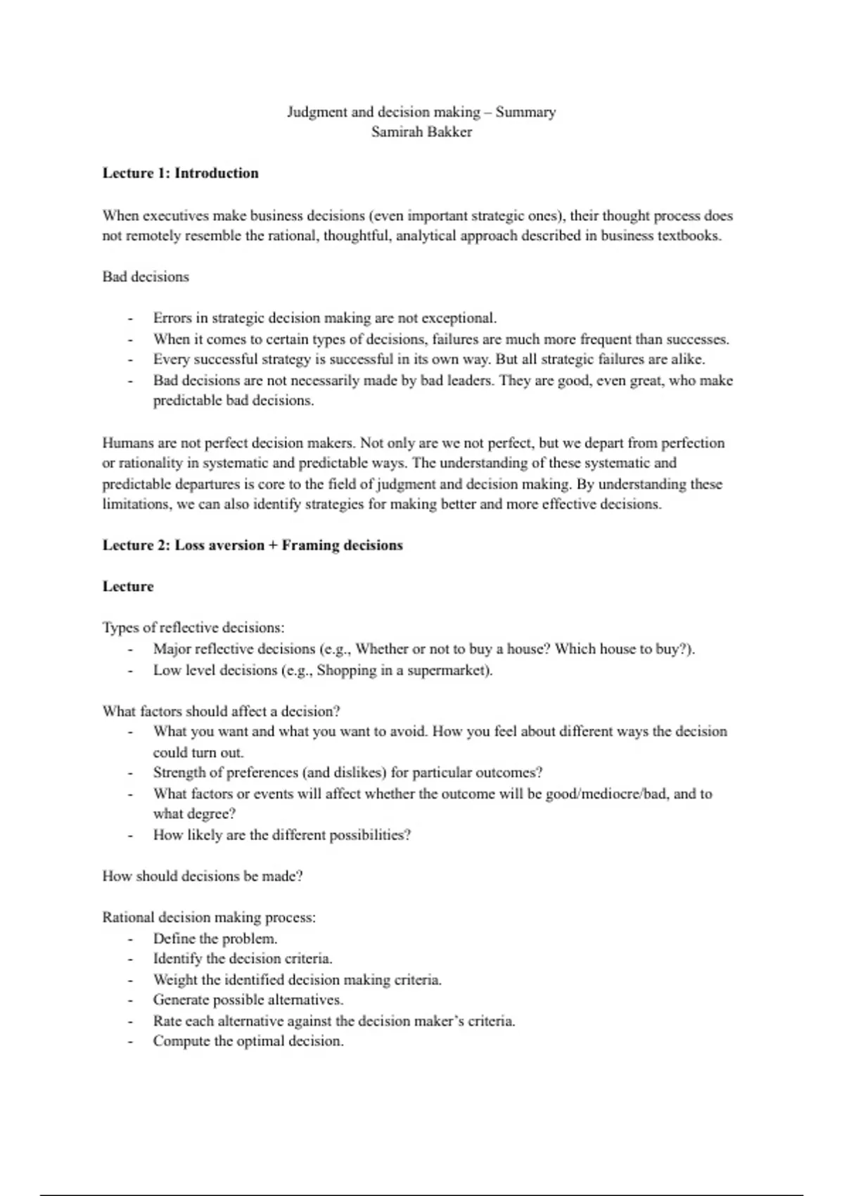 Judgment and decision making – Summary