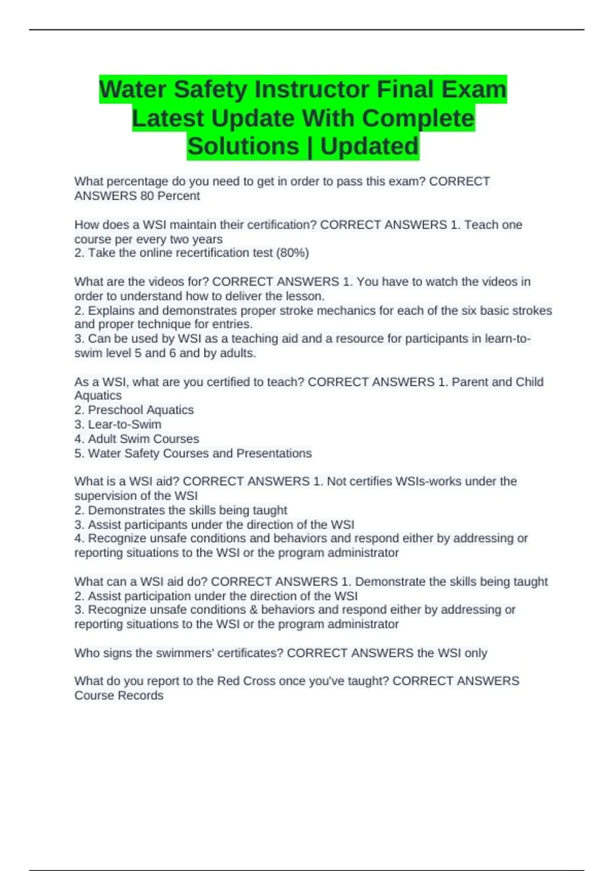 How does a WSI maintain their certification? CORRECT ANSWERS 1. Teach one