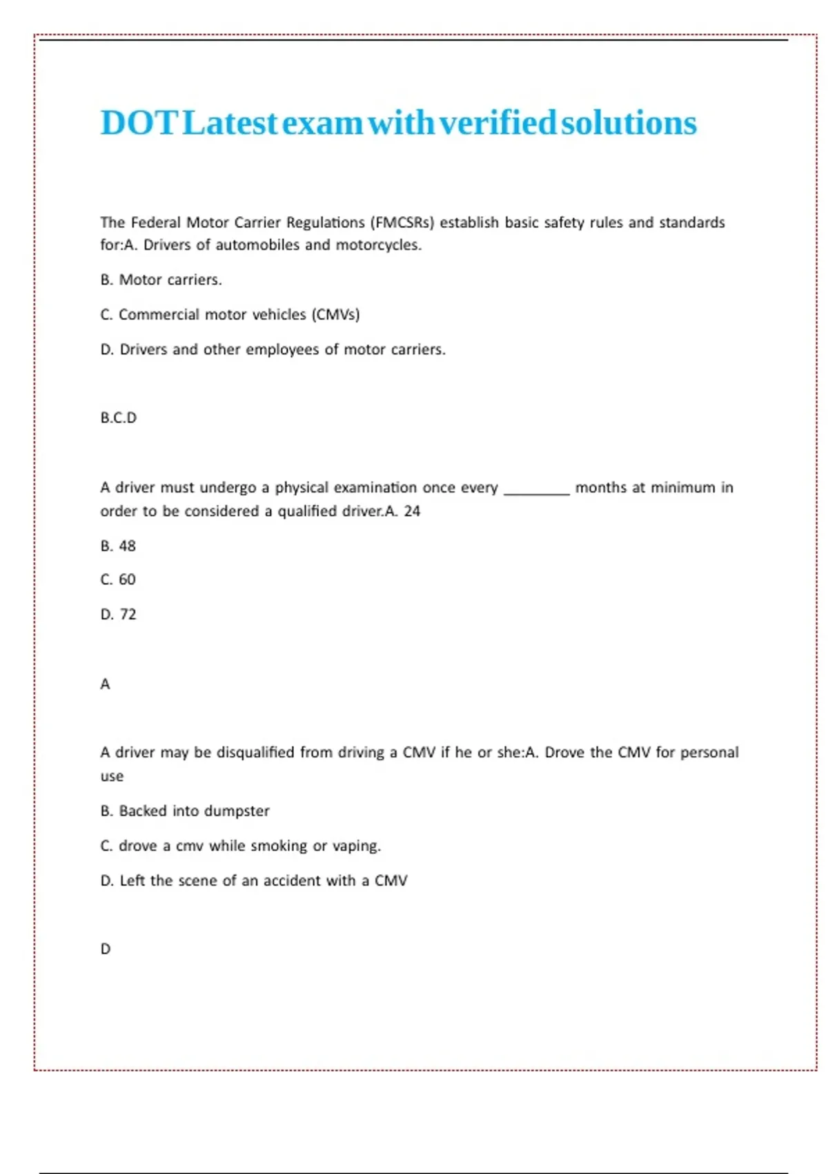 DOT Latest exam with verified solutions ||//\\|| ||//\\|| ||//\\|| ||//\\|| ||//\\||
