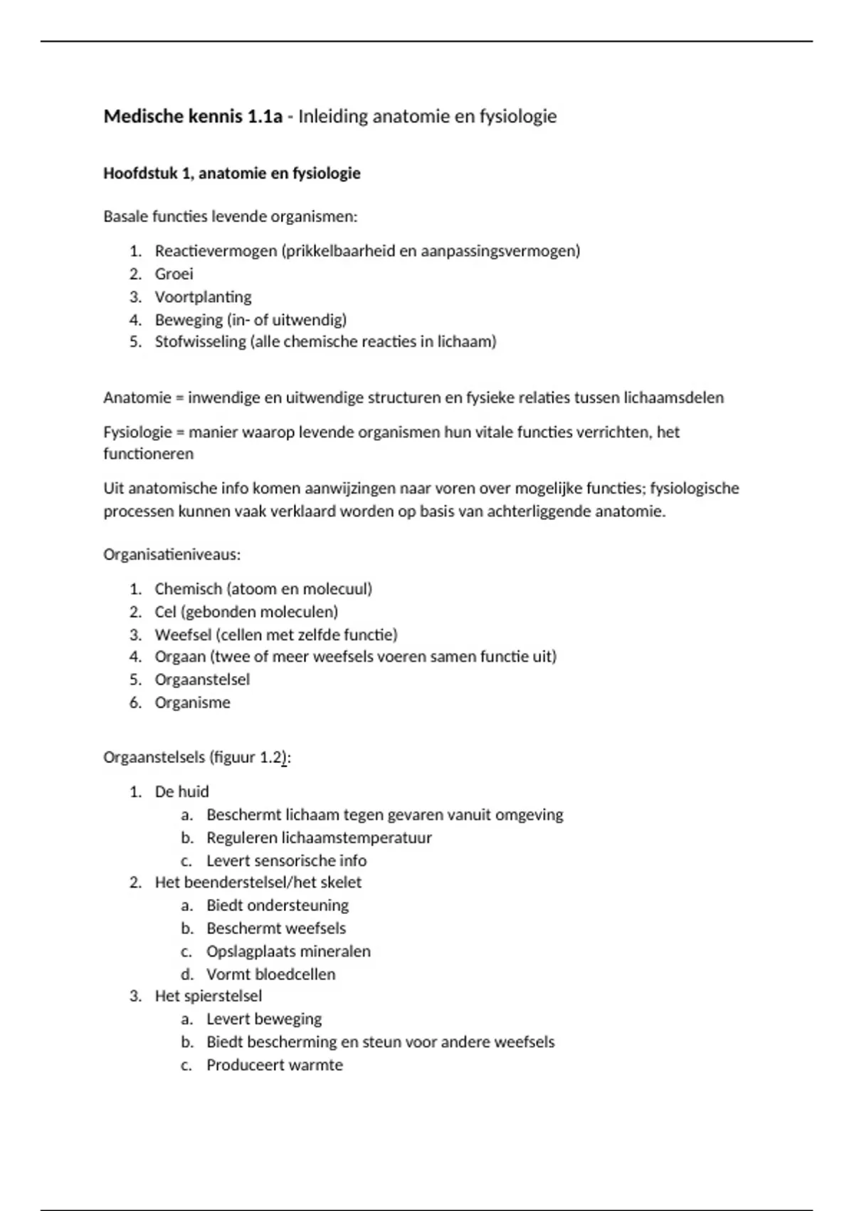 Medische kennis 1.1a - Inleiding anatomie en fysiologie