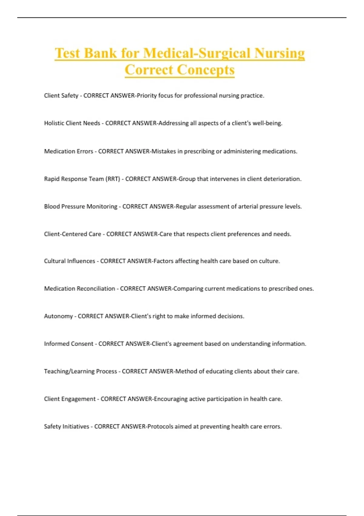 Test Bank for Medical-Surgical Nursing
