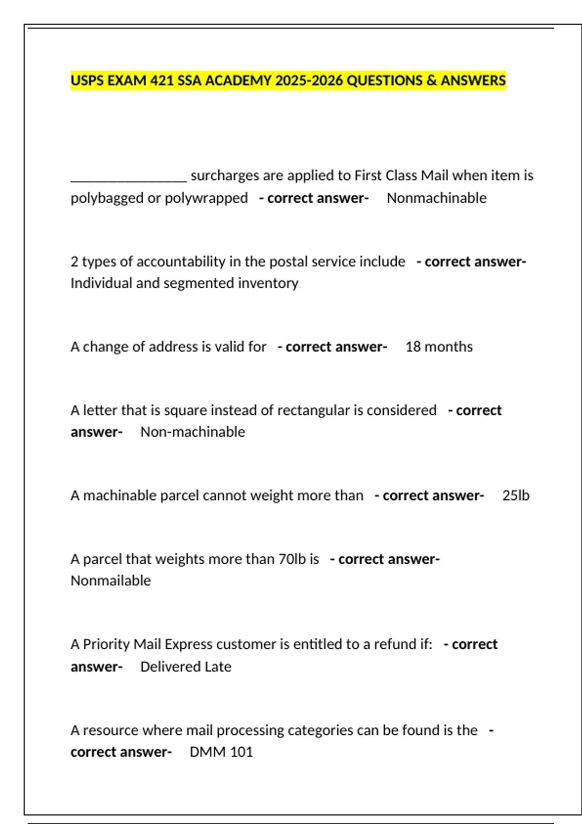 A machinable parcel cannot weight more than - correct answer- 25lb