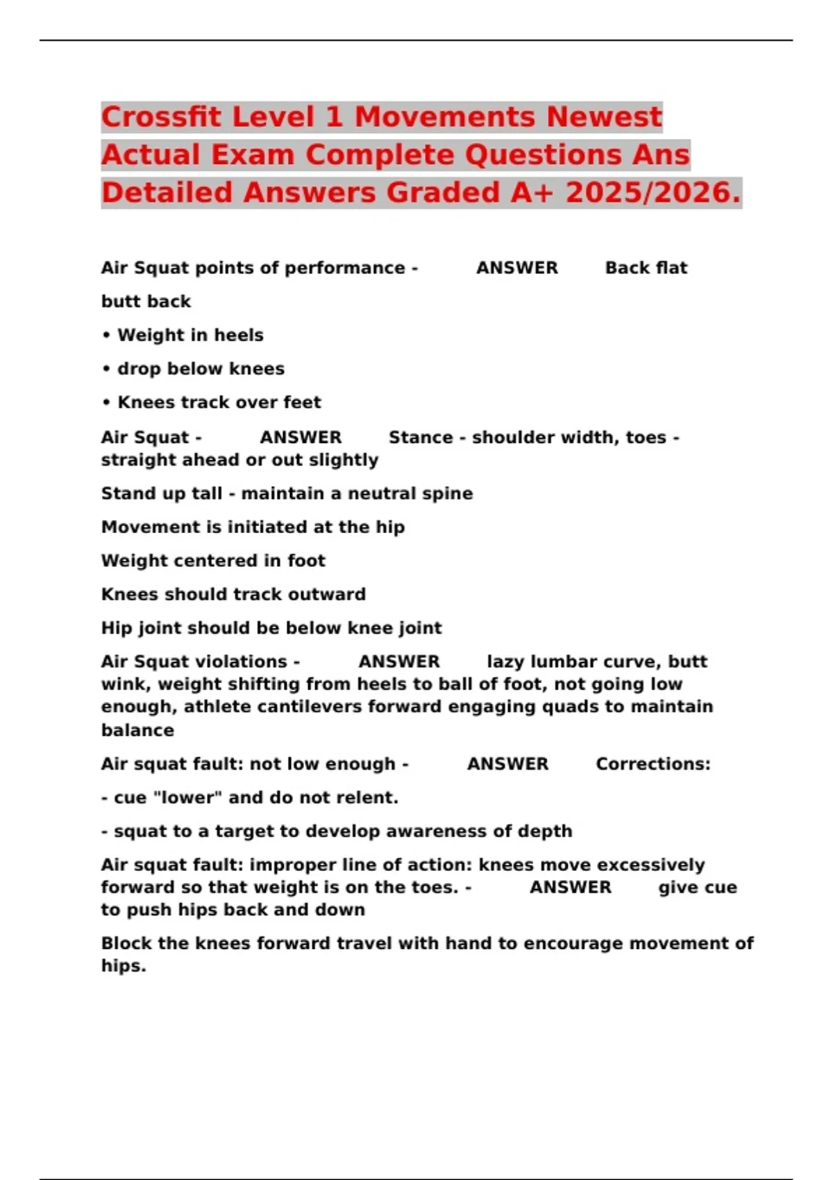 Crossfit Level 1 Movements Newest Actual Exam Complete Questions Ans Detailed Answers Graded A+ 2025/2026.
