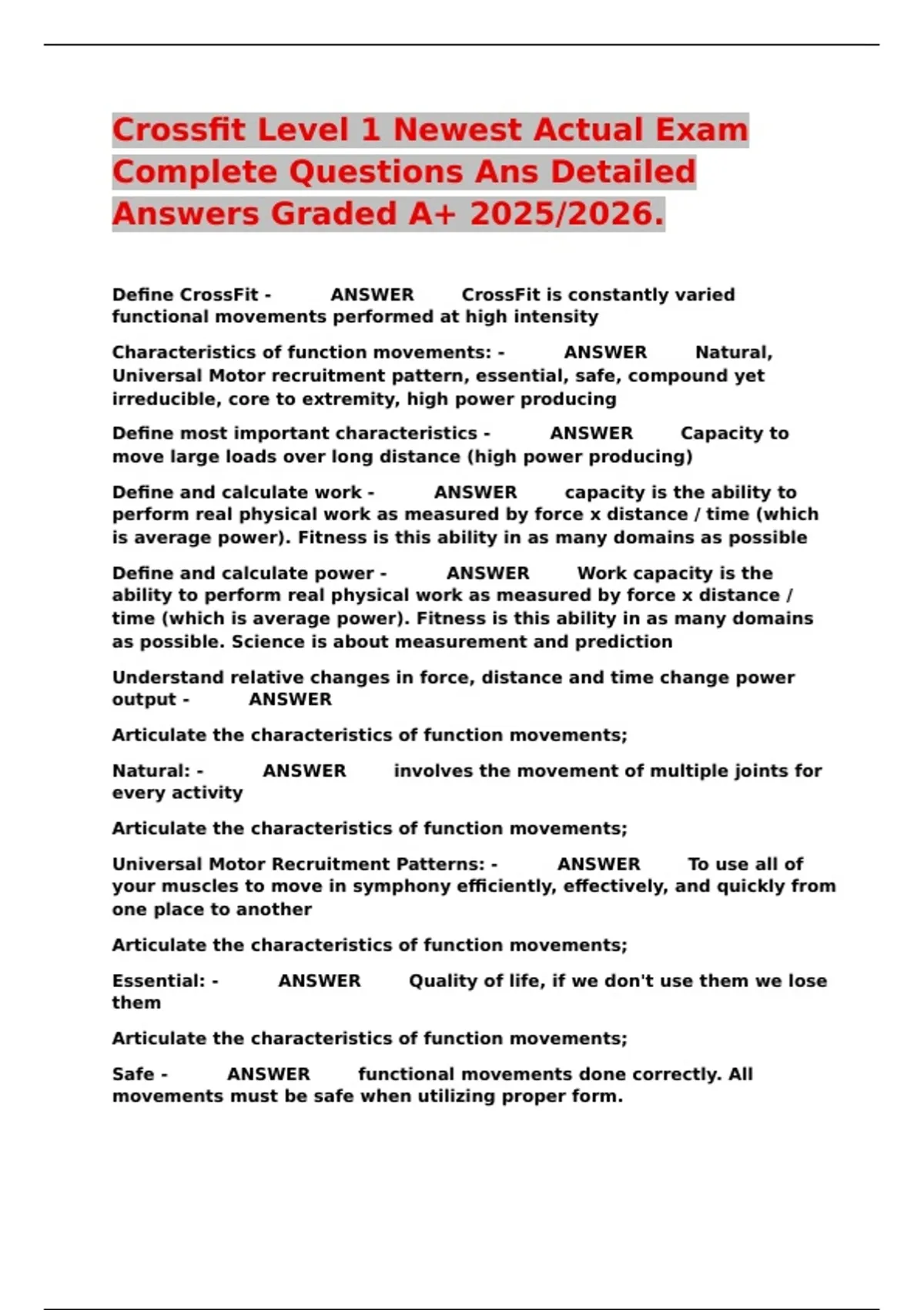 Crossfit Level 1 Newest Actual Exam