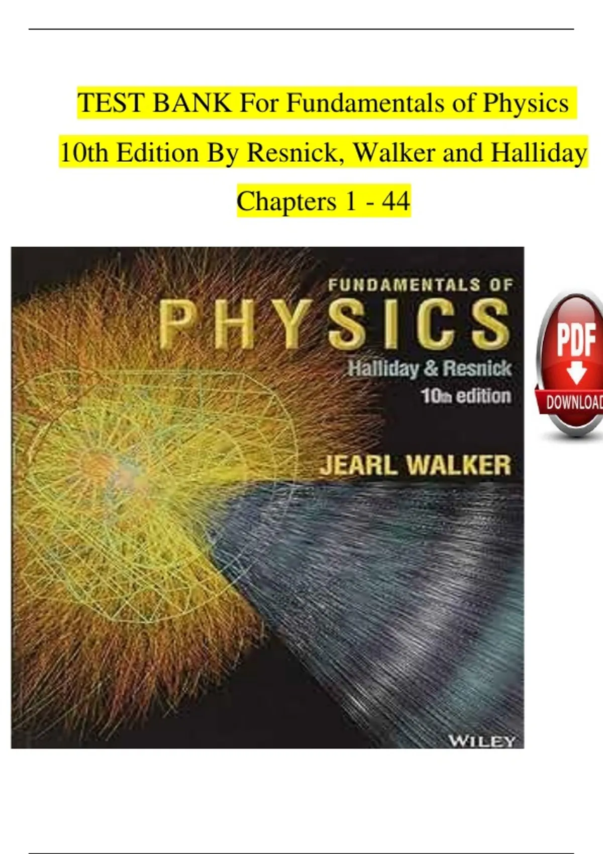 TEST BANK For Fundamentals of Physics 10th Edition By Resnick, Walker and Halliday Chapters 1 - 44