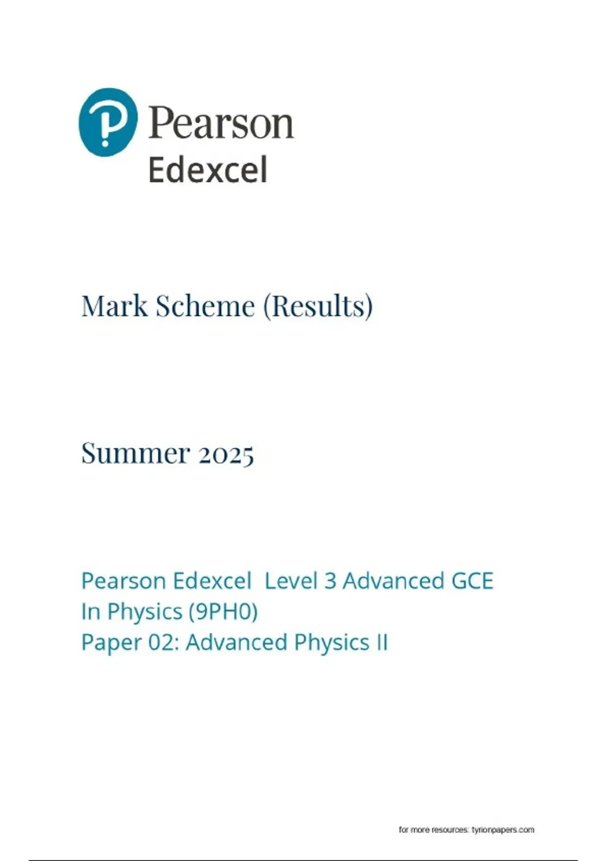 A-Level EDEXCEL 2025 Physics Paper 2 Mark Scheme