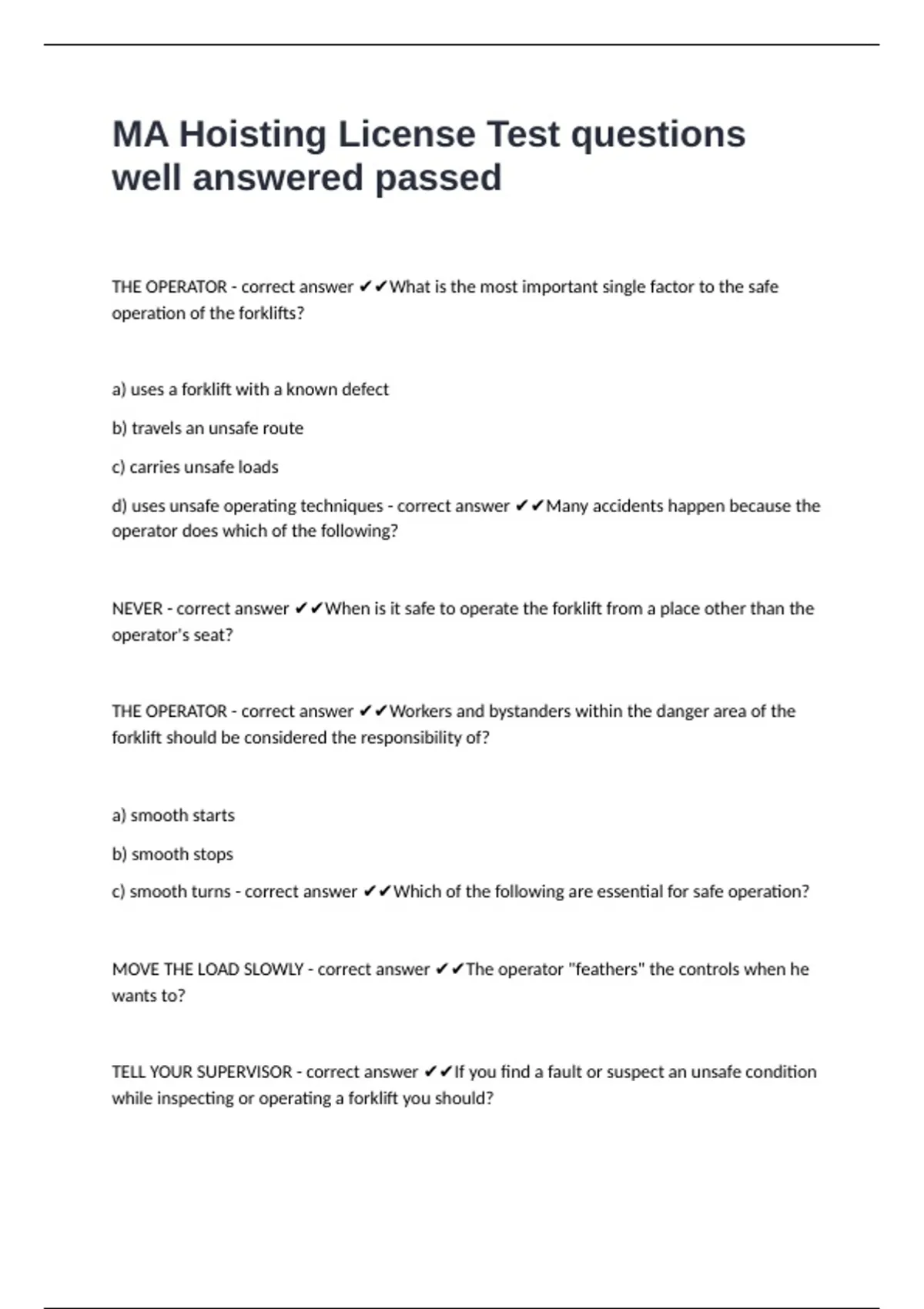 MA Hoisting License Test questions well answered passed