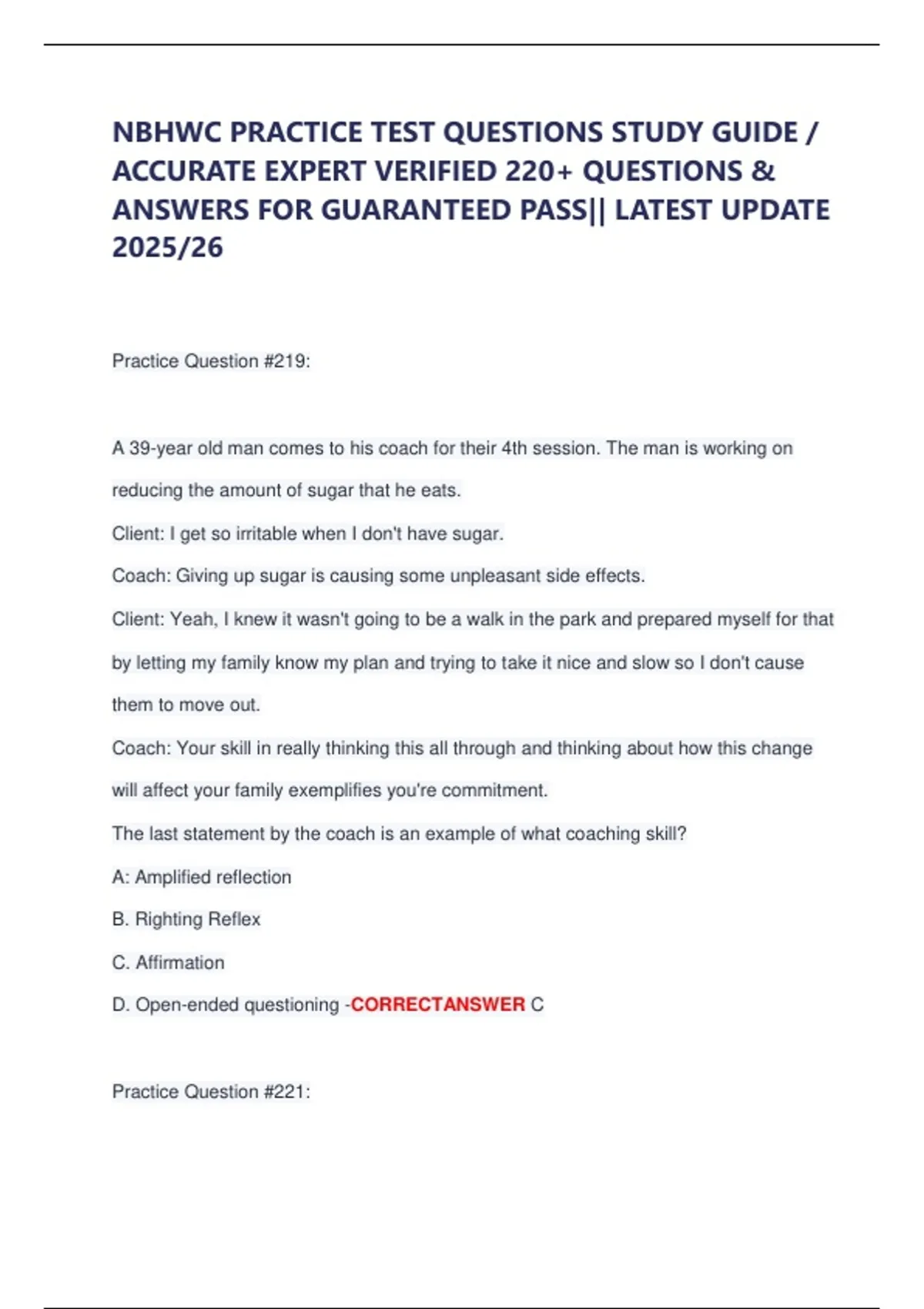 NBHWC PRACTICE TEST QUESTIONS STUDY GUIDE /