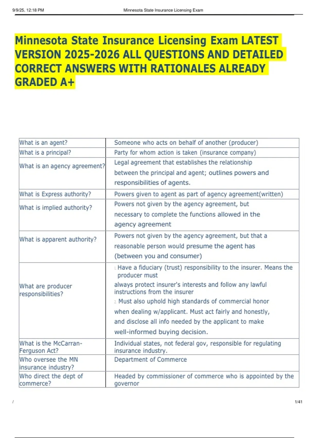 , 9/9/25, 12:18 PM Minnesota State Insurance Licensing Exam