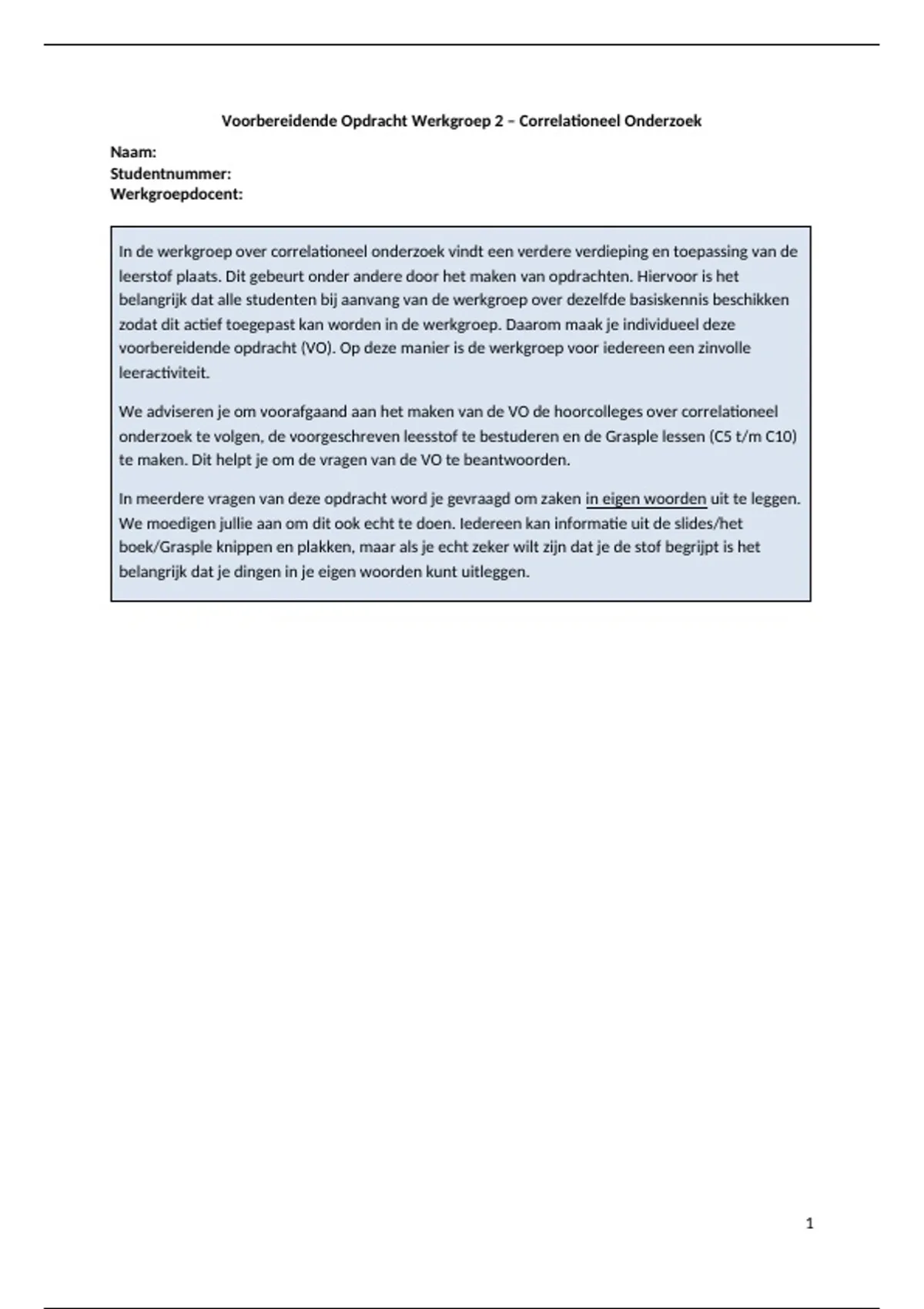 We adviseren je om voorafgaand aan het maken van de VO de hoorcolleges over correlationeel