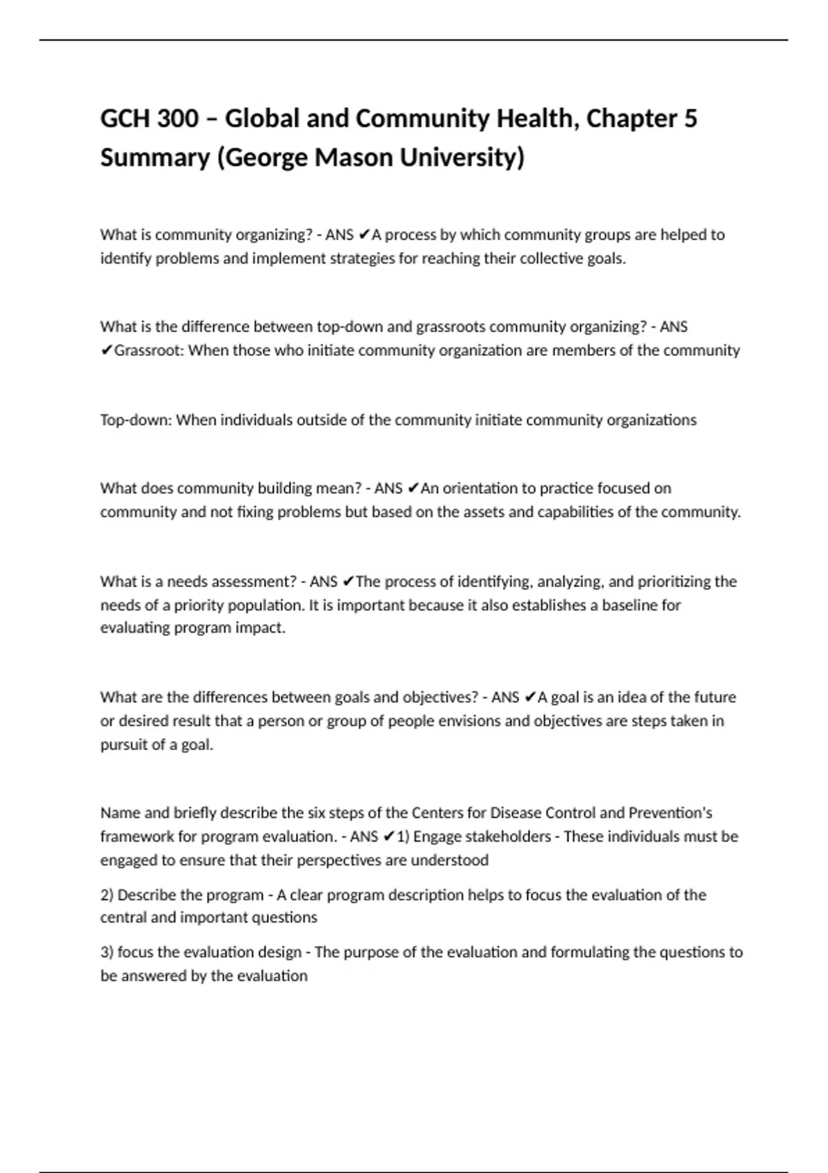 framework for program evaluation. - ANS ✔1) Engage stakeholders - These individuals must be