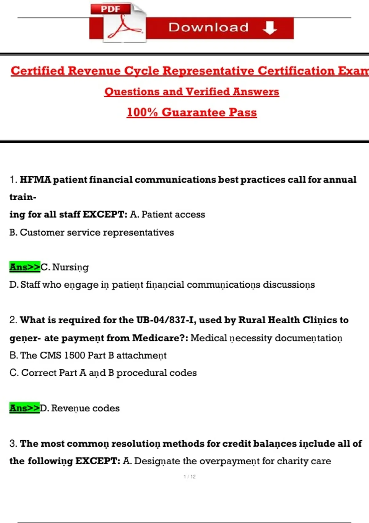 1. HFMA patient financial communications best practices call for annual