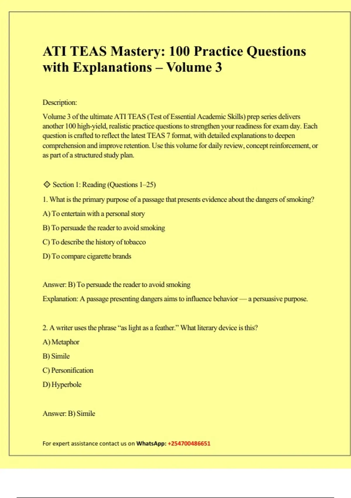 Volume 3 of the ultimate ATI TEAS (Test of Essential Academic Skills) prep series delivers another 100 high-yield, realistic practice questions to strengthen your readiness for exam day. Each question is crafted to reflect the latest TEAS 7 format, with detailed explanations to deepen comprehension and improve retention. Use this volume for daily review, concept reinforcement, or as part of a structured study plan.