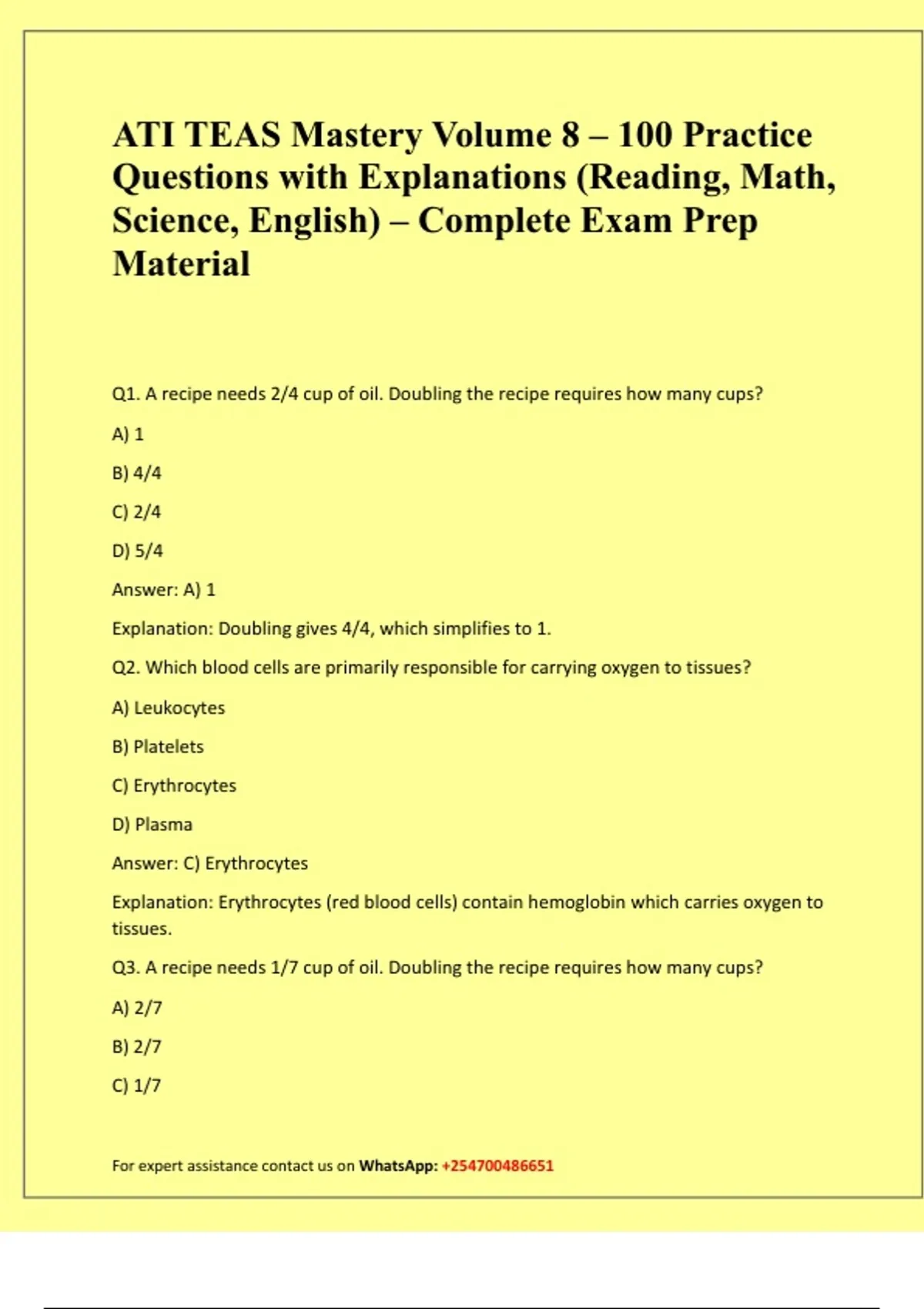 ATI TEAS Mastery Volume 8 – 100 Practice Questions with Explanations (Reading, Math, Science, English) – Complete Exam Prep Material
