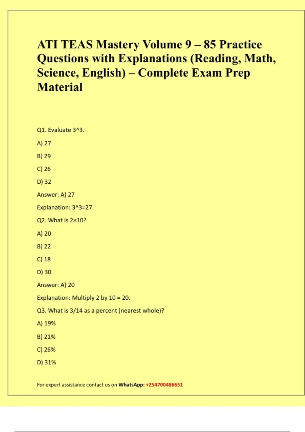 ATI TEAS Mastery Volume 9 – 85 Practice Questions with Explanations (Reading, Math, Science, English) – Complete Exam Prep Material
