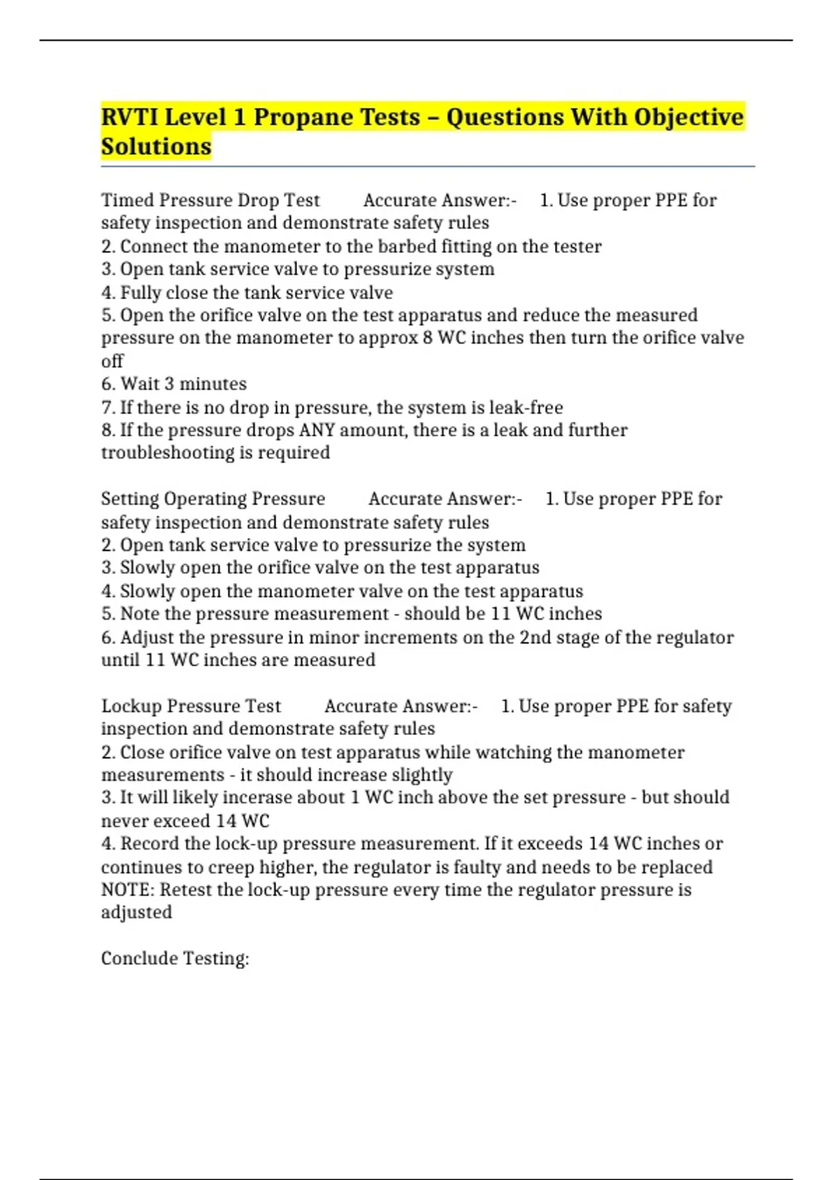 Timed Pressure Drop Test Accurate Answer:- 1. Use proper PPE for