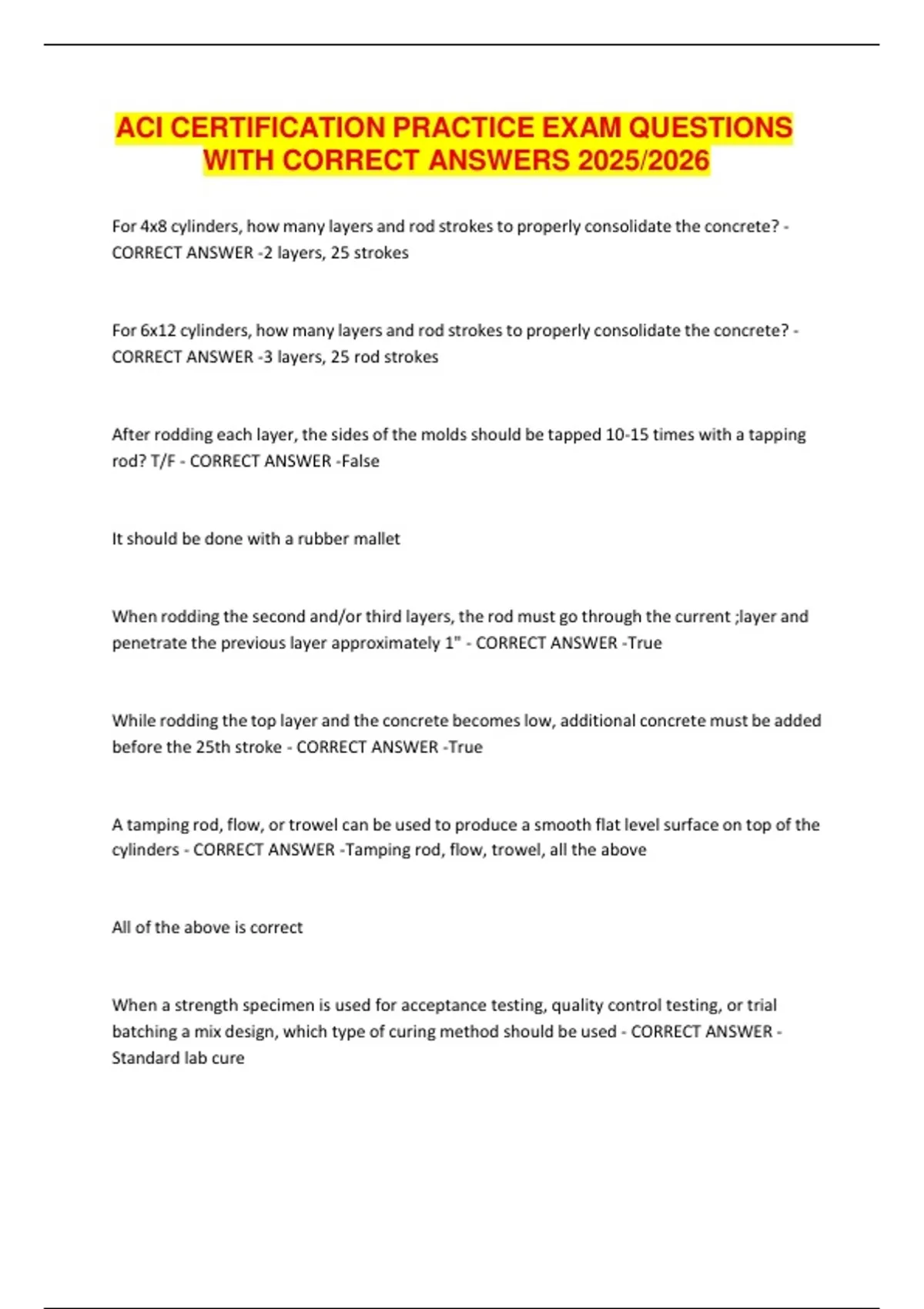 ACI CERTIFICATION PRACTICE EXAM QUESTIONS