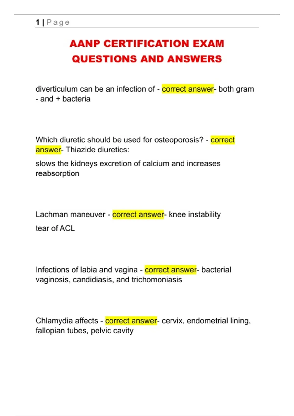 AANP CERTIFICATION EXAM QUESTIONS AND ANSWERS