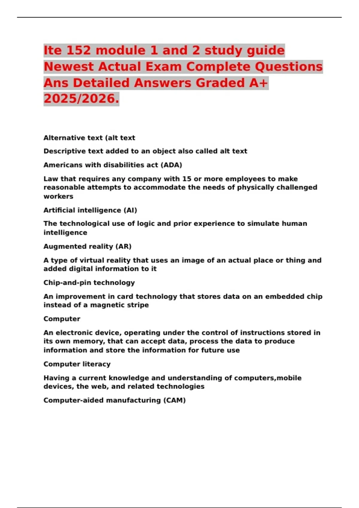 Ite 152 module 1 and 2 study guide Newest Actual Exam Complete Questions Ans Detailed Answers Graded A+ 2025/2026.