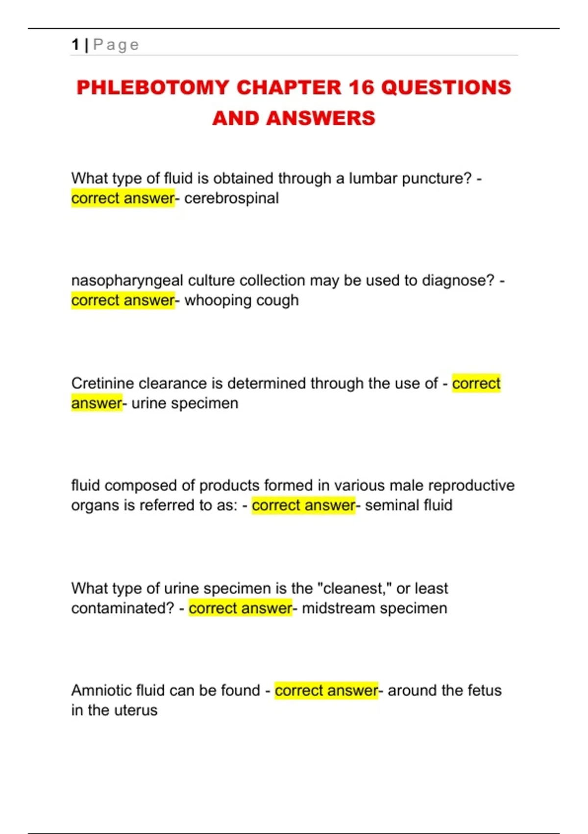 PHLEBOTOMY CHAPTER 16 QUESTIONS