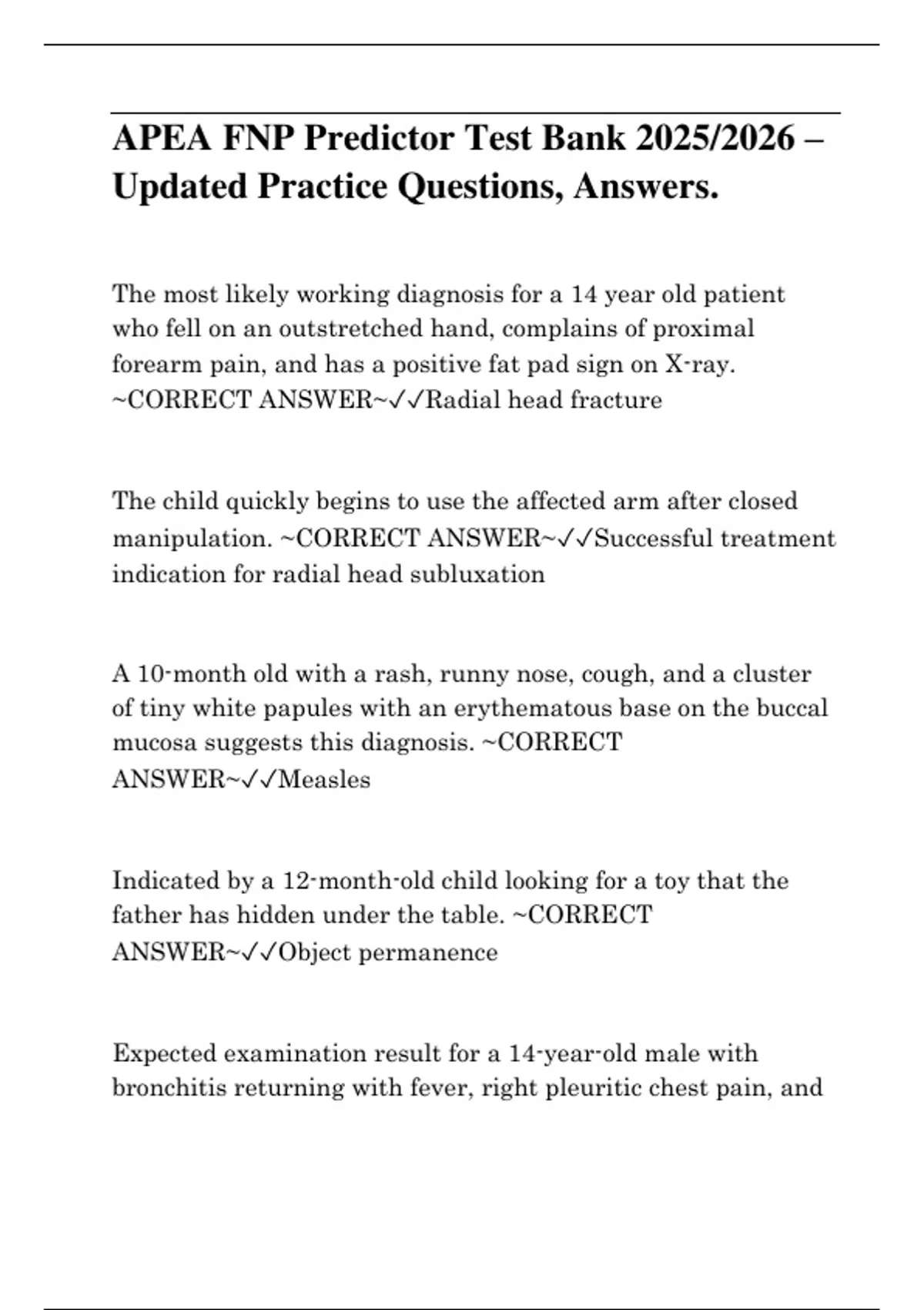 ~CORRECT ANSWER~✓✓Radial head fracture
