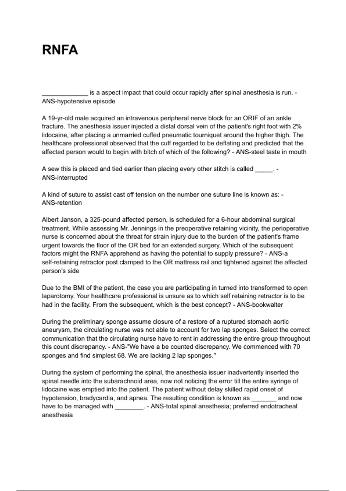 factors might the RNFA apprehend as having the potential to supply pressure? - ANS-a