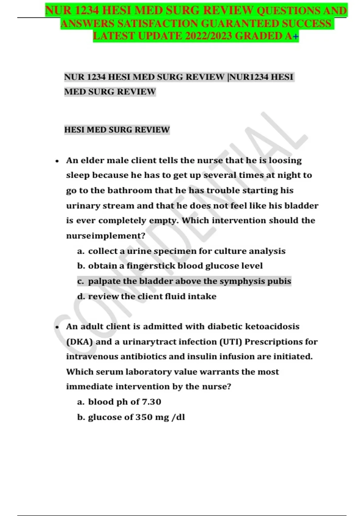 NUR 1234 HESI MED SURG REVIEW |NUR1234 HESI