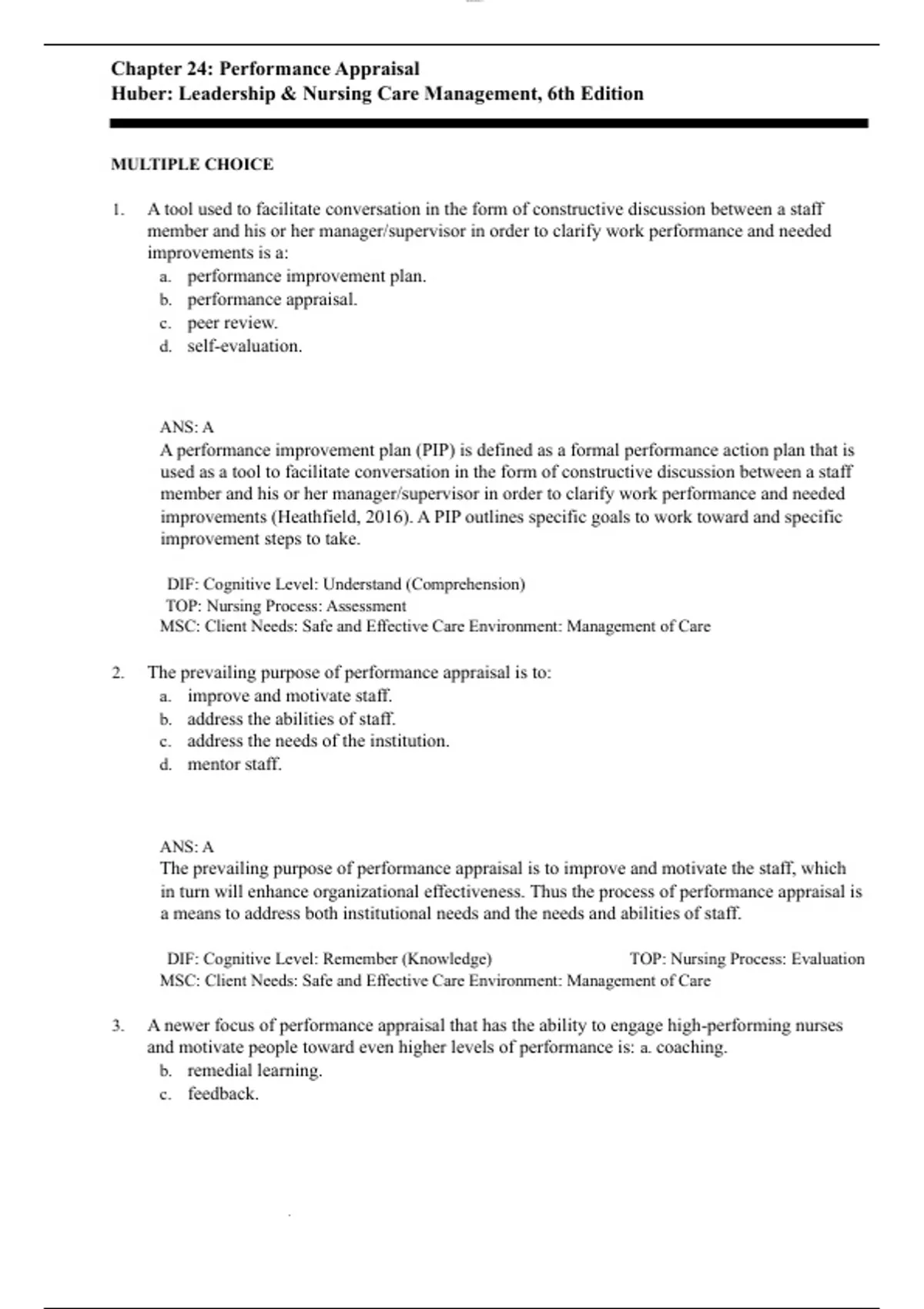 Chapter 24 Performance Appraisal Questions and Answers with Complete Solutions