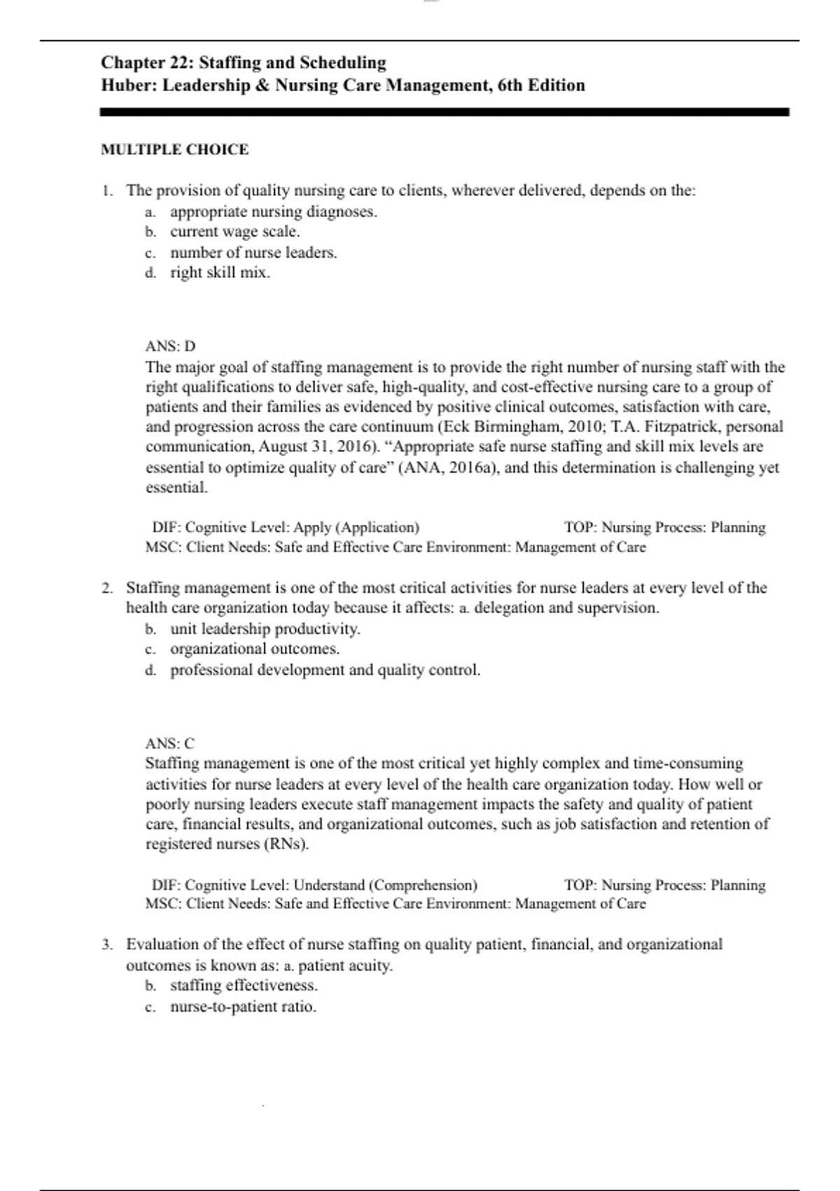 2. Staffing management is one of the most critical activities for nurse leaders at every level of the