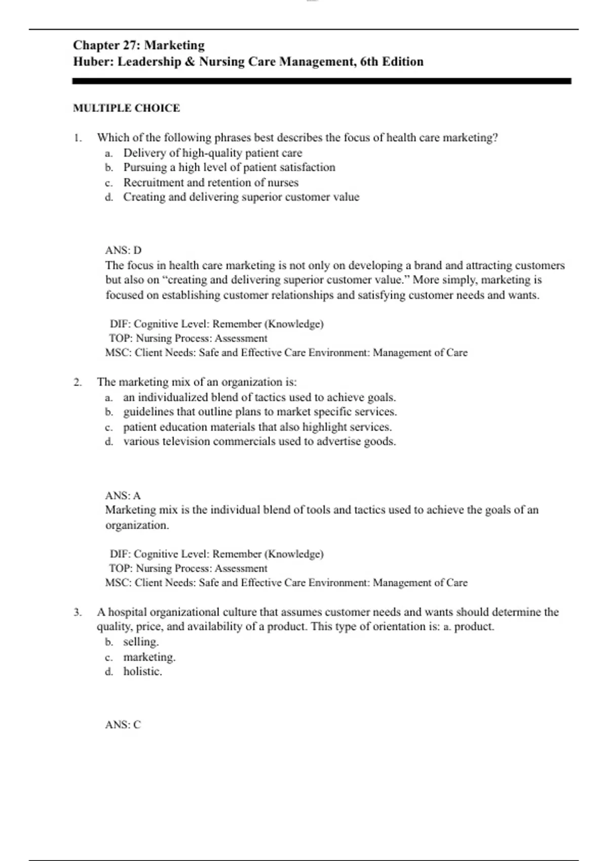 Chapter 27 Marketing Questions and Answers with Complete Solutions