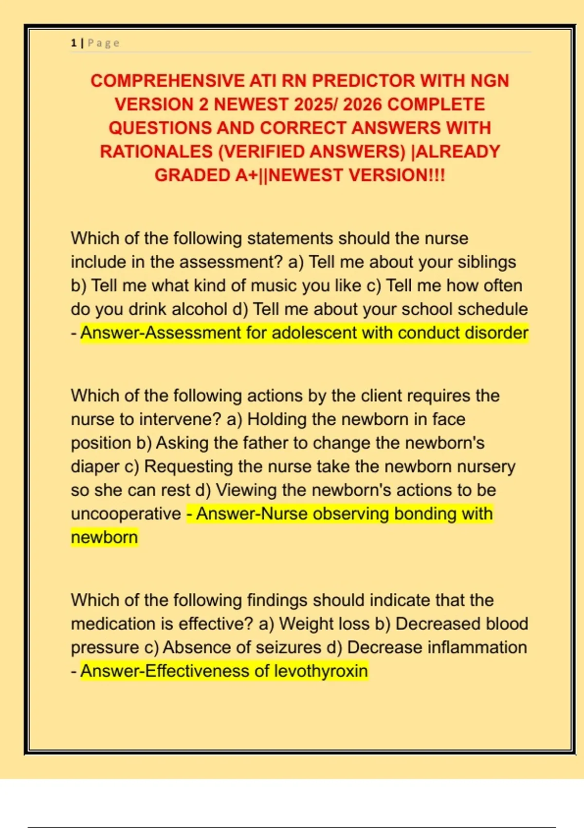COMPREHENSIVE ATI RN PREDICTOR WITH NGN