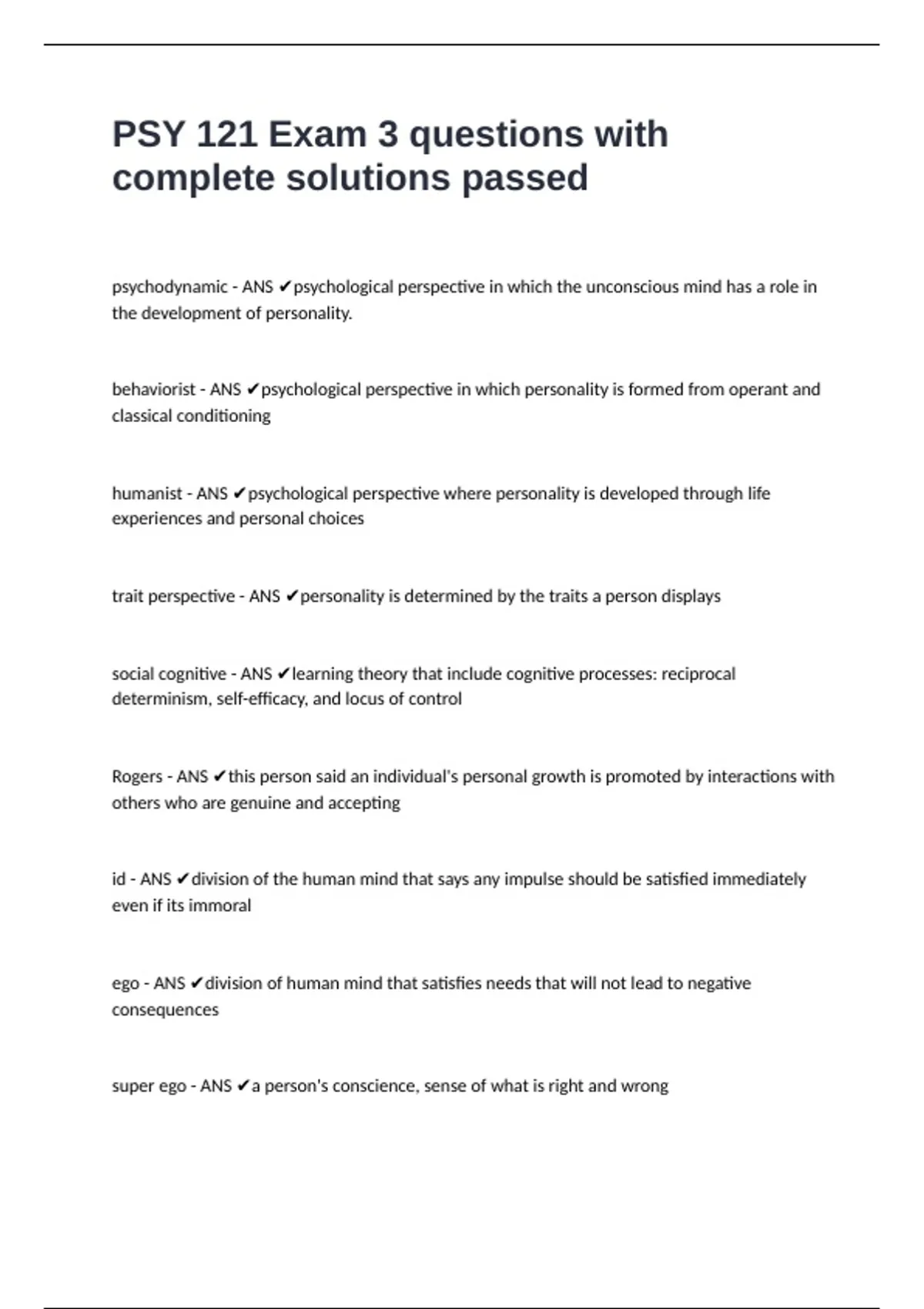 humanist - ANS ✔psychological perspective where personality is developed through life