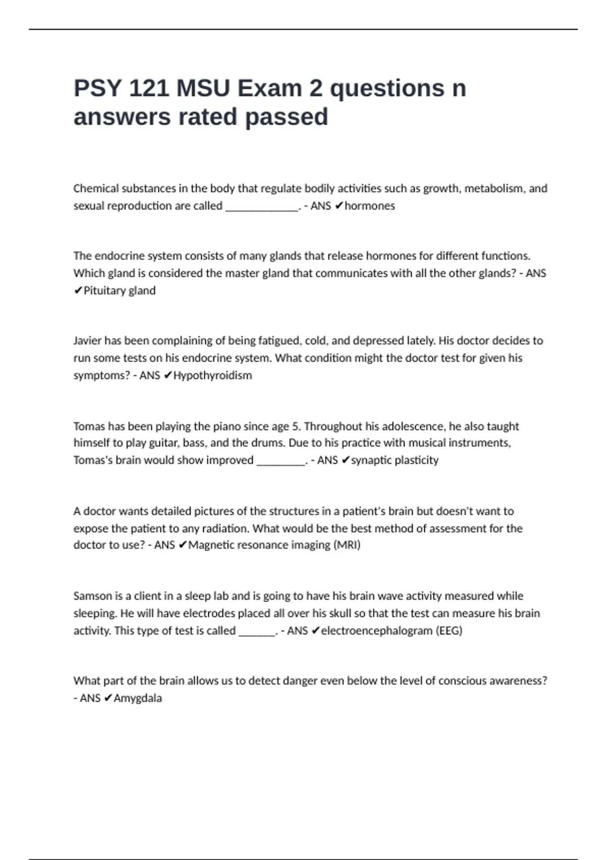 activity. This type of test is called ______. - ANS ✔electroencephalogram (EEG)