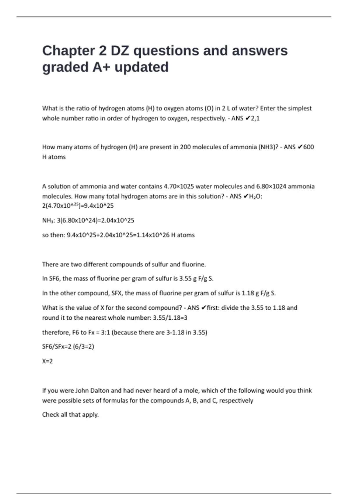 molecules. How many total hydrogen atoms are in this solution? - ANS ✔H₂O: